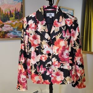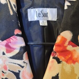 Le Suit Women's Floral Blazer - Black and Pink