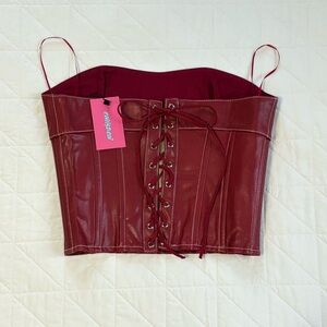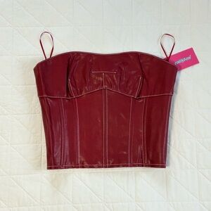 SOLD - DO NOT BUY - Bundle Burgundy Vegan Leather Corset and Leopard Baggy Jeans