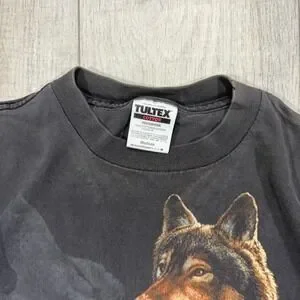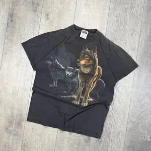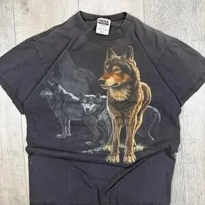 Vintage 90s super faded wolf nature wildlife animal all over print aop t graphic t shirt