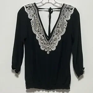 SILK sparkling EMBROIDERED Sheer and lightweight WHITE HOUSE BLACK MARKET BLOUSE