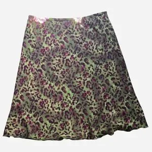 Y2K Vintage SKIRT Pink Green Cheetah Floral Boho 2000s Size Medium