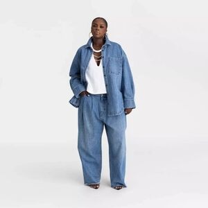 KBB by KAHLANA Medium Wash Denim Button Down Shirt Size XXL