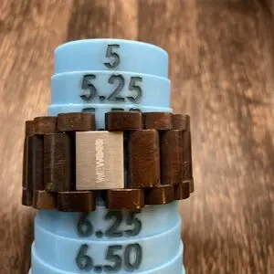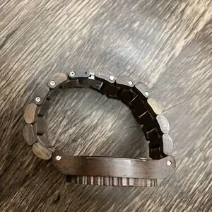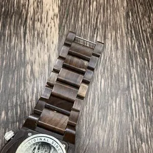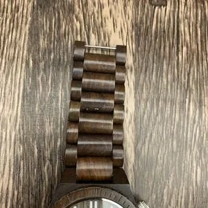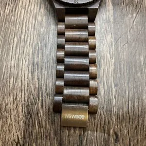 Wewood 100% Natural Wood Watch With Date Display New Battery Max wrist size is 6 inches with a 46 mm case made of 100% natural wood. New battery installed and working. Watch can be worn by a man or woman.