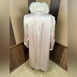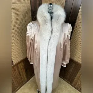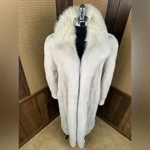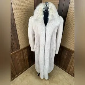 STUNNING VINTAGE FULL LENGTH IVORY CREAM MINK & FOX COLLAR FUR COAT JACKET XL