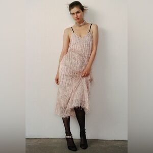 En Saison Blush Feathered Chemise fringe soft almost maxi large