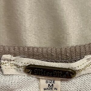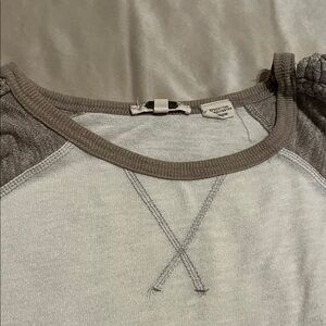 Elevate your style with this chic gray and cream top featuring elegant ruffle sleeves. Perfect for any occasion, this top combines comfort and fashion effortlessly. Shoulder cut out with bows