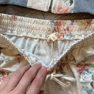 Hem & Thread Lounge Floral Zip-Up Jacket and Shorts Set size small