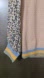 Banded stripes in blue, yellow and green, on end of sleeves and hemline