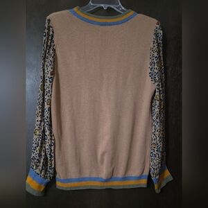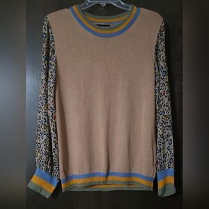 Anthropologie Cashmere Celia Leopard Pullover Tan/Brown Knit Sweater Size Medium