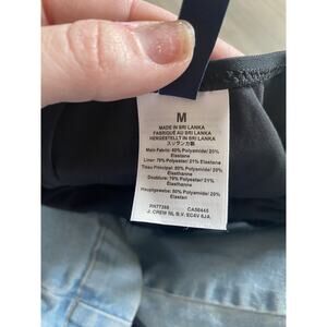 The J.Crew black bow shoulder v neck one piece swimsuit in size M is a stylish and flattering option for women looking for a sophisticated swimwear choice. The black color, bow accent, and v-neck design add a touch of elegance and class to this one-piece suit, making it perfect for beach days or poolside lounging. The regular fit and high-quality construction from J.Crew ensure both comfort and durability, making it a versatile and chic addition to any woman's swimwear collection.