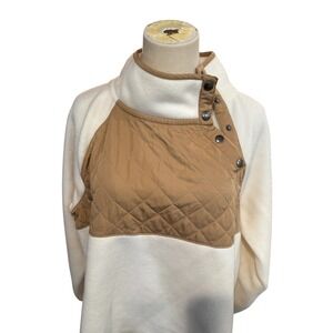 J.Crew Womens XL Fleece Pullover Quilted Snap Neck Asymmetrical Cream Tan