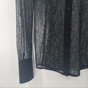 EQUIPMENT Black Lace Button Down Blouse Sexy Lolita Cocktail Sheer