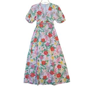 Old Navy Womens Floral Linen Blend Wrap Maxi Dress Cottagecore Small Puff Sleeve