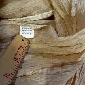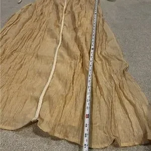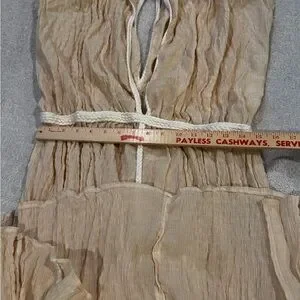 Beautiful lightweight boho crinkle gauze midi dress in a soft beige / cream tone. Features a flowy silhouette with empire waist and rope tie detail that creates a flattering, relaxed fit.