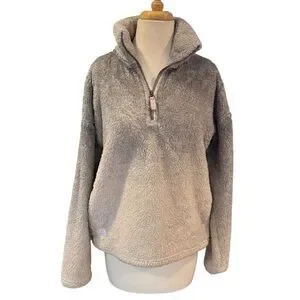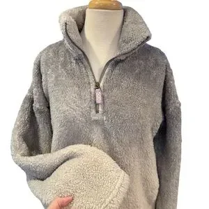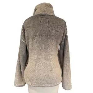 Simply Southern Sherpa Fleece Quarter Zip Pullover Ombre Gray Beige Large