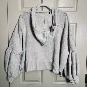 Oversized knit hooded sweater from the brand POL. Chunky texture, relaxed fit, with dramatic puff bishop sleeves.