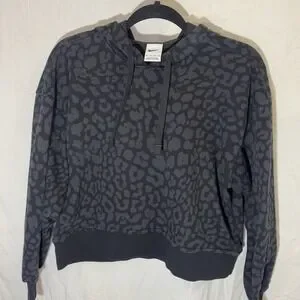 Nike Women's Cropped Hooded Training Sweatshirt Size Medium Cheetah Print Black