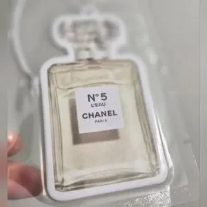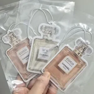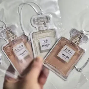 Set of Chanel bottle-shaped hanging air fresheners. Includes 2 Coco Mademoiselle and No.5 designs. Amazing scent! Hang in cars or small spaces for a stylish touch.