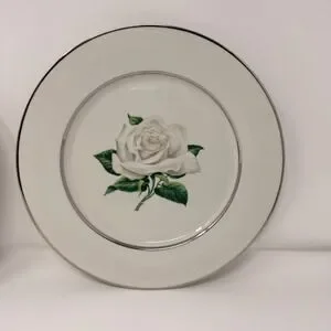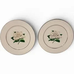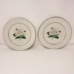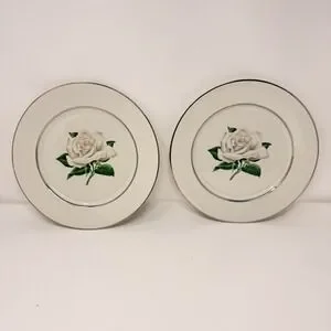 Set of 2 Embassy Vitrified White Rose - Dinner Plate - 10 1/8" Diameter