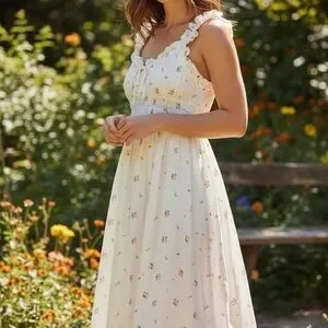 The Old Navy Women White Floral Dress in size M is a stylish and versatile piece for the summer and spring seasons. Made from 100% cotton, this sleeveless dress features a sweetheart neckline and strappy sleeves, adding a touch of elegance. The floral pattern and bow accents give it a feminine and charming look, perfect for casual occasions or travel. With a maxi dress length and smocked features, this dress from Old Navy is sure to become a favorite in any woman's wardrobe.Length 42”