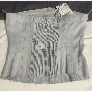 Zara Women's Buttoned Strapless Corset Top Denim Shiny Stretch Size S - NWT. Condition is New with tags. Shipped with USPS Priority Mail.