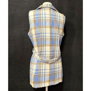 light blue flannel plaid long vest sleeveless coat