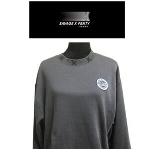 NWT Savage x Fenty Essential Holographic 3D Logo-Trim Oversized Sweatshirt Grey