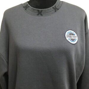 Color: Ghost Em Grey, Fleece body, All-gender fit, Long Sleeve. Logo and stripe flat knit rib at body hem, sleeve cuffs, and neck trim
