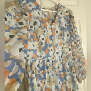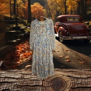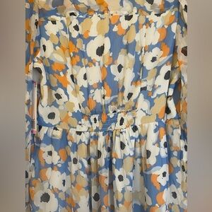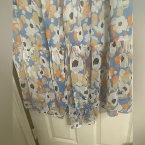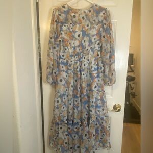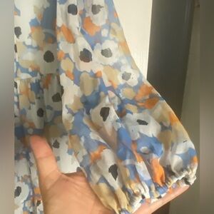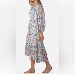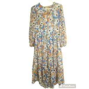 Embrace your feminine side with this stunning Joie Floral Field maxi dress. The multicolor floral pattern adds a pop of color to any occasion, whether it be a wedding or a casual day out. The long sleeves and dress length make it perfect for transitioning from day to night. Crafted from polyester, this dress is both comfortable and stylish. The size is a small, making it perfect for regular-sized women. The flowing maxi style and flower theme add a touch of elegance to any outfit. Get ready to turn heads in this sensational dress. The back of the dress is a bit longer than the front.