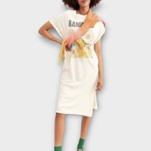 Free People Letluv Ramones Band Graphic Tee Shirt Sz Extra Small. Midi, cotton. Comfy, oversized pullover with a relaxed feel featuring a band logo. This item can be worn as a midi dress or as a tunic over leggings / pants, etc. *Oversized Silhouette *Pullover Style *Ribbed Trim *Short, Cuffed Sleeves *Front Leg Slit *100% Cotton *Hand Wash *Imported Colors: Ivory; Multicolor Approximate Length: 42”. Flat lay measurements: Pit to pit: 18”. Hips” 19”. Excellent clean condition.