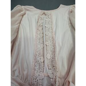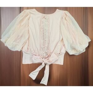 Francesca’s MI AMI Blush Crochet Puff Sleeve Tie Back Blouse Women’s SZ SM NWT