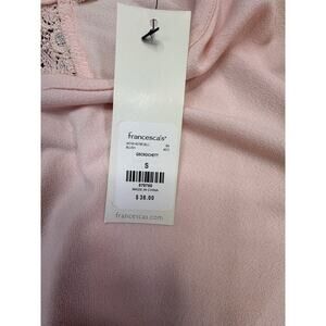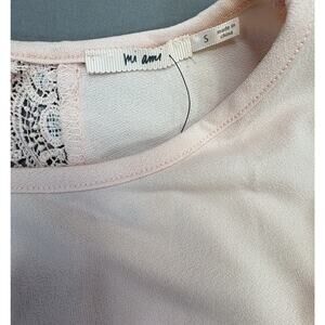 Brand new with tags Francesca’s MI AMI blush pink blouse, style QSCROCHETT (RN 94826). This beautiful top features romantic puff sleeves, delicate crochet lace detail on the back, and an adjustable tie waist for a flattering, feminine fit.