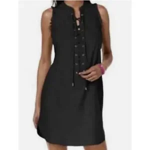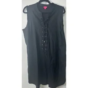 Trina Turk x I.N.C. Linen Blend Lace-Up Dress BLACK XL POCKETS Casual Slvls A42