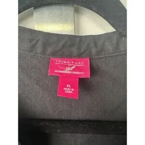 The Trina Turk x I.N.C. Linen Blend Lace-Up Dress in black size XL is a stylish and versatile piece for the modern woman. This knee-length dress features a flattering V-neckline, sleeveless design, and unique lace-up closure. Made of a comfortable rayon and linen blend, it is perfect for a casual day out or a party/cocktail occasion. The added touch of pockets adds both functionality and style to this overall designer dress, making it a must-have addition to any wardrobe for the summer, fall, or spring seasons.