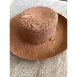 Scala Collection Women Wide-Brim Tan Straw Sun Hat Classic Boater Style