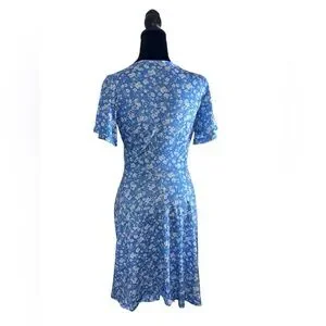 Fensace Blue Floral Sundress Midi V-neck wrap Dress