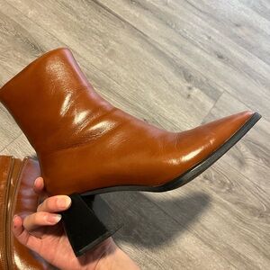 Step out in style with these chic brown leather ankle boots. Perfect for any occasion, these boots offer both comfort and elegance.