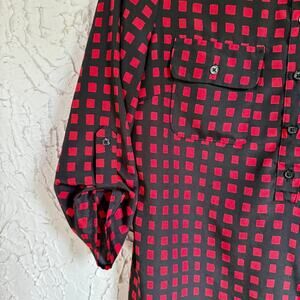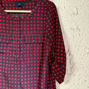 Chic top with red and black square pattern. Ideal for casual wear.