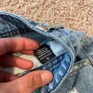 RUE 21 High-Rise Distressed ButtonFly Denim Shorts, size 6, in cotton materiL, 5 pockets design, with cut-out front details. Pre-owned, in excellent condition.