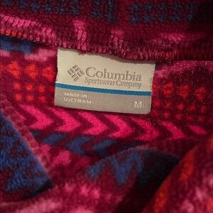 Columbia Glacial IV printed fleece. Soft, lightweight micro fleece feel. Cowl neck/turtle neck soft layering sweater. Embroidered “Columbia” logo on left sleeve. Horizontal multicolor pattern. 100% polyester micro fleece Great condition