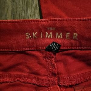 High-rise skimmer jeans in burnt red zippers on side ankles. Stretchy fabric for a snug fit.size 4, great shape