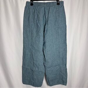Eileen Fisher 100% Organic Linen Wide Leg Pants Blue Green Small Lagenlook