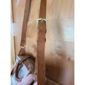 Includes leather shoulder strap with belt buckle and sliding shoulder piece.