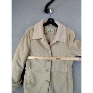 St Johns Bay Womens Jacket Large Beige Leather Suede Sherpa Lined Soft Washable