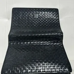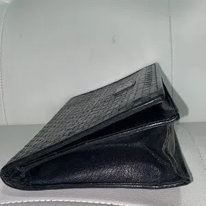 Authentic FENDI Black Leather Woven Clutch Bag elegant piece perfect for any occasion. Its sleek design and classic color make it a versatile addition to your wardrobe. Preowned condition with some signs of normal wear. Spacious for your phone, wallet, keys etc.