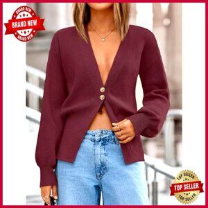 Cropped V-Neck Button Cardigan Sweater Long Sleeve Knit Slim Fit