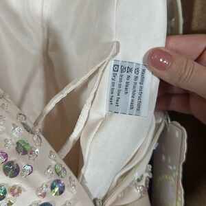 Hebeos US14 sleeveless long chiffon dress with gems and beads. a-line pale pink