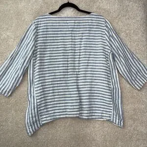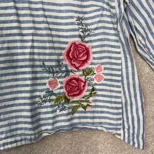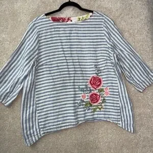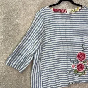 J. JILL Love Linen Top Women's Large Petite LP Stripe Floral Embroidered