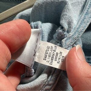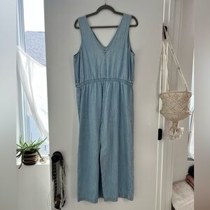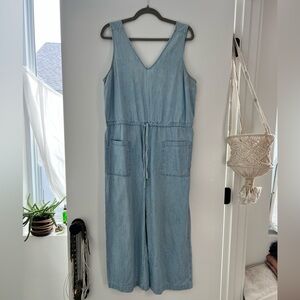 Chic and versatile denim sleeveless jumper perfect for any occasion. Features a flattering fit with a drawstring waist for added style.