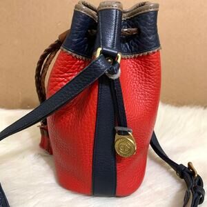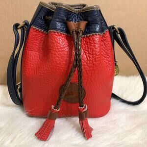 DOONEY and BOURKE Vintage Red & Blue All Weather Leather TETON Drawstring Bucket